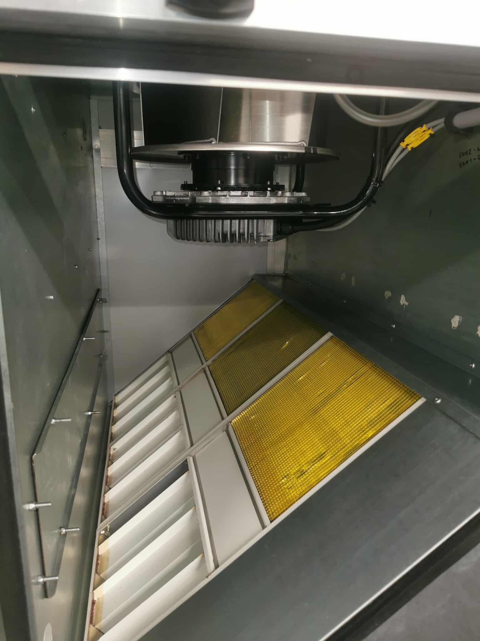 Do czyszczenia kanałów o dużych rozmiarach można zastosować z powodzeniem Technologię Rotobrush. Jest to połączenie maszyny czyszczącej i odciągu, dzięki czemu wykonujemy usługę czyszczenia kanałów wentylacyjnych przy użyciu jednego urządzenia. Model aiR+ XPi posiada dwa silniki ssawne, co pozwala bezproblemowo odciągnąć zanieczyszczenia w kanałach wentylacyjnych, wzbudzone wcześniej przez szczotkę. Dzięki temu wszystkie nagromadzone zanieczyszczenia są odrywane od ścianek przewodów wentylacyjnych. Kurz, pył i drobnoustroje są zasysane bezpośrednio do maszyny, co zapobiega ich ponownemu przedostaniu się do powietrza.